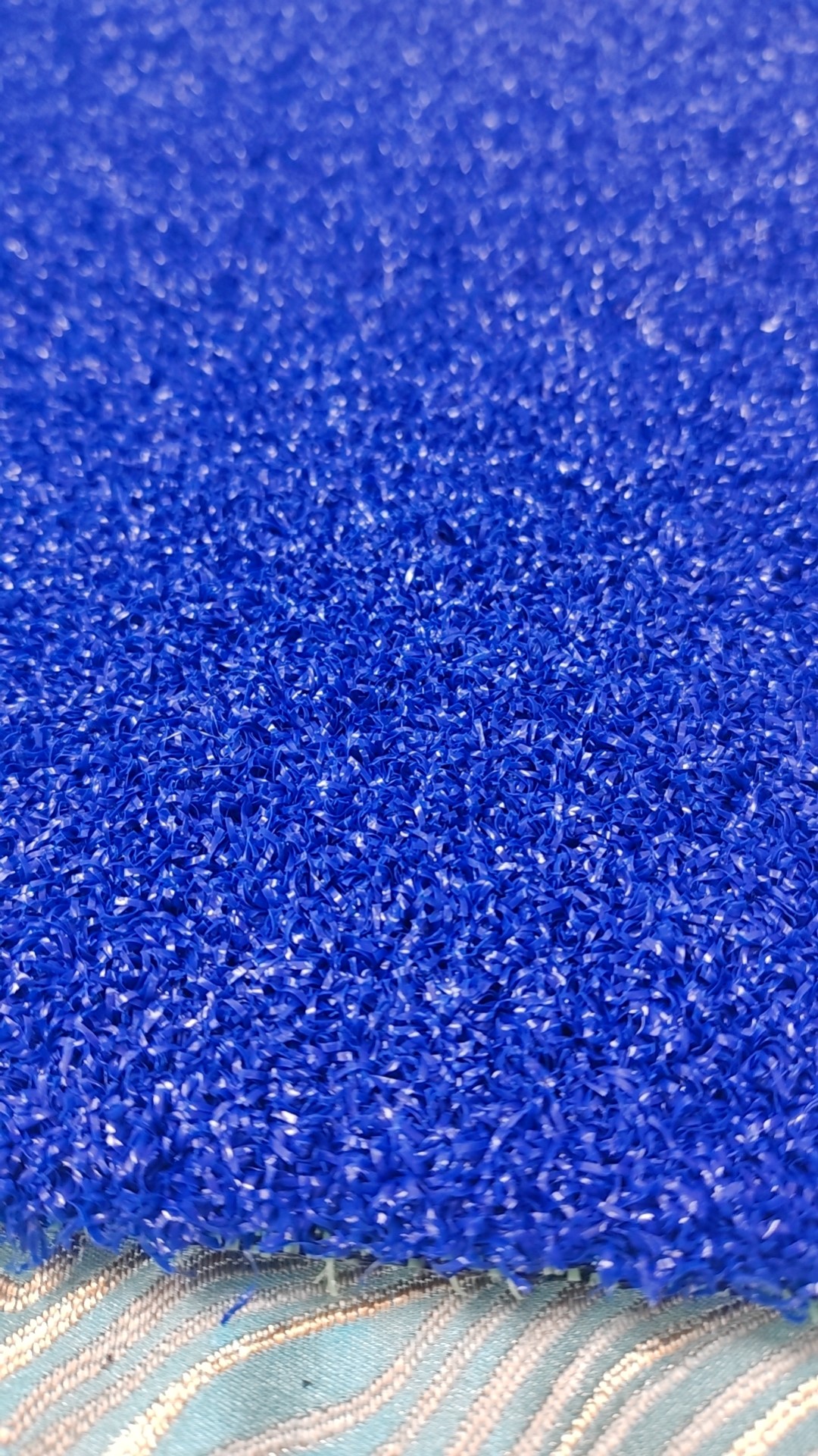 產(chǎn)品性能I 采用熱空氣變形工藝使草纖維卷曲一次成型,簇絨編織,背膠后草絲無(wú)方向性相互穿插,使得草坪毯面平整自然;